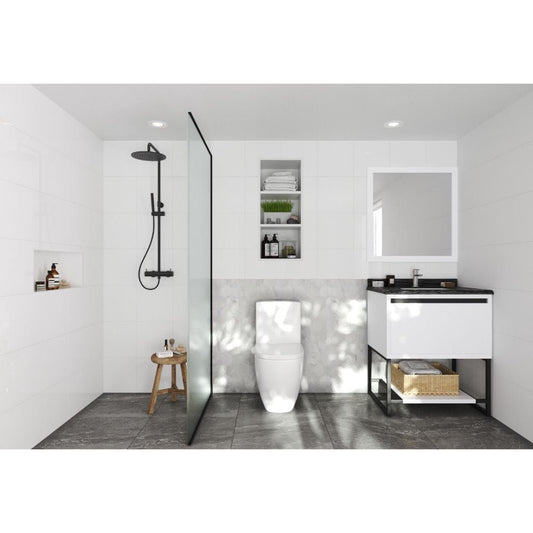 Laviva Alto 30" White Vanity Base and Black Wood Marble Countertop With Rectangular Ceramic Sink
