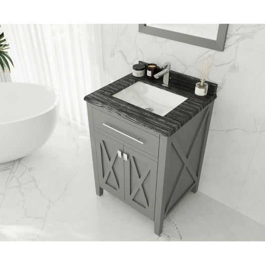 Laviva Wimbledon 24" Gray Vanity Base and Black Wood Marble Countertop With Rectangular Ceramic Sink