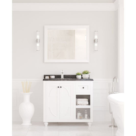 Laviva Mediterraneo 36" White Vanity Base and Black Wood Marble Countertop With Rectangular Ceramic Sink