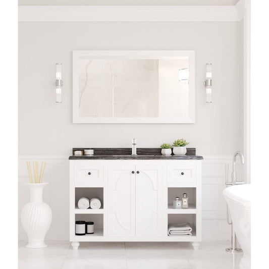 Laviva Odyssey 48" White Vanity Base and Black Wood Marble Countertop With Rectangular Ceramic Sink