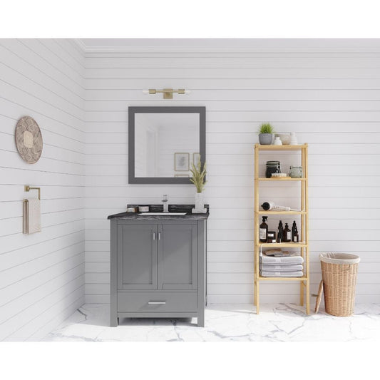 Laviva Wilson 30" Gray Vanity Base and Black Wood Marble Countertop With Rectangular Ceramic Sink