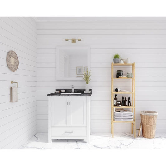 Laviva Odyssey 30" White Vanity Base and Black Wood Marble Countertop With Rectangular Ceramic Sink