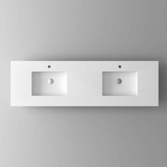Laviva Forever 60" Matte White Viva Stone Solid Surface Countertop With Double Integrated Sinks
