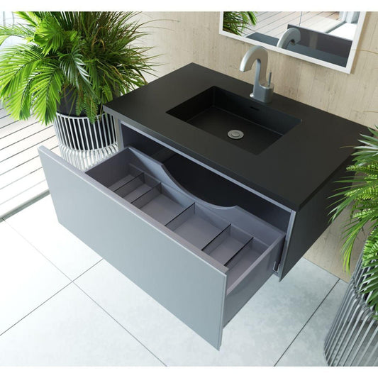 Laviva Vitri 36" Fossil Gray Vanity Base and Matte Black Solid Surface Countertop With Integrated Sink