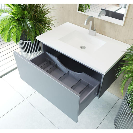 Laviva Vitri 36" Fossil Gray Vanity Base and Matte White Solid Surface Countertop With Integrated Sink