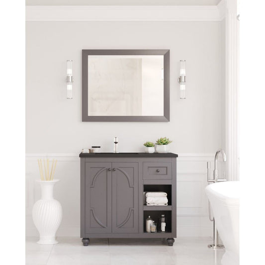 Laviva Odyssey 36" Maple Gray Vanity Base and Matte Black Solid Surface Countertop With Left Offset Integrated Sink