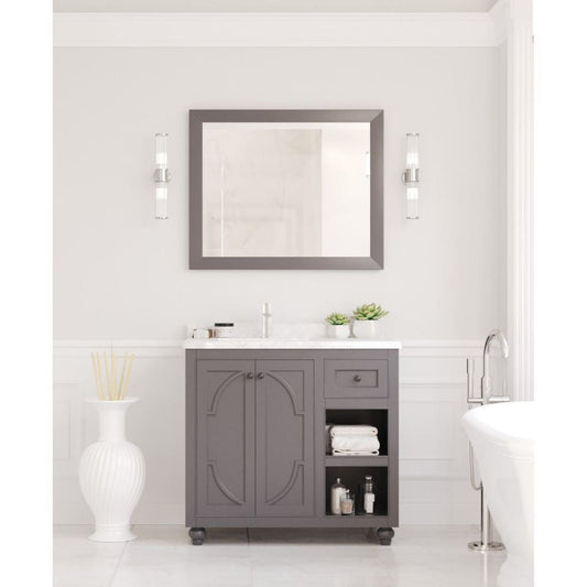 Laviva Odyssey 36" Maple Gray Vanity Base and White Carrara Marble Countertop With Left Offset Rectangular Ceramic Sink