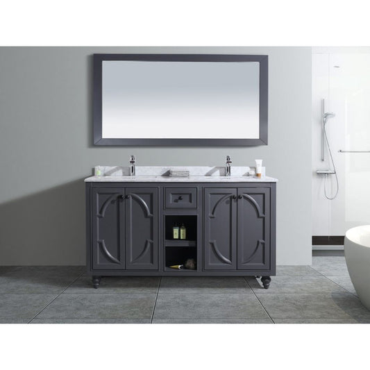 Laviva Odyssey 60" Maple Gray Vanity Base and White Carrara Marble Countertop With Double Rectangular Ceramic Sinks