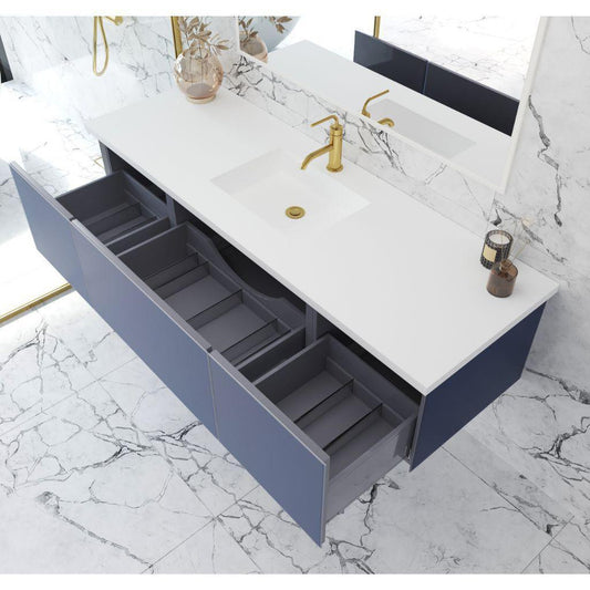 Laviva Vitri 60" Nautical Blue Vanity Base and Matte White Solid Surface Countertop With Double Integrated Sink