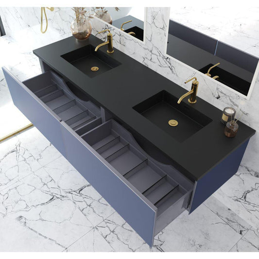 Laviva Vitri 72" Nautical Blue Vanity Base and Matte Black Solid Surface Countertop With Double Integrated Sink