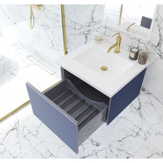 Laviva Vitri 24" Nautical Blue Vanity Base and Matte White Solid Surface Countertop With Integrated Sink
