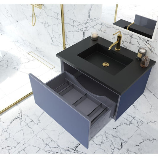 Laviva Vitri 30" Nautical Blue Vanity Base and Matte Black Solid Surface Countertop With Integrated Sink