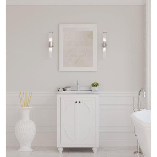 Laviva Odyssey 24" White Vanity Base and White Carrara Marble Countertop With Rectangular Ceramic Sink