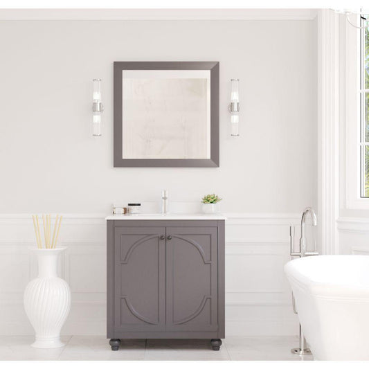 Laviva Odyssey 30" Maple Gray Vanity Base and Pure White Phoenix Stone Countertop With Oval Ceramic Sink