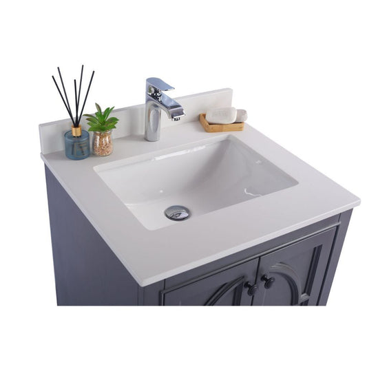 Laviva Odyssey 24" Maple Gray Vanity Base and White Quartz Countertop With Rectangular Ceramic Sink