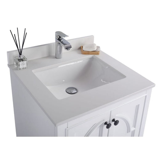 Laviva Odyssey 24" White Vanity Base and White Quartz Countertop With Rectangular Ceramic Sink
