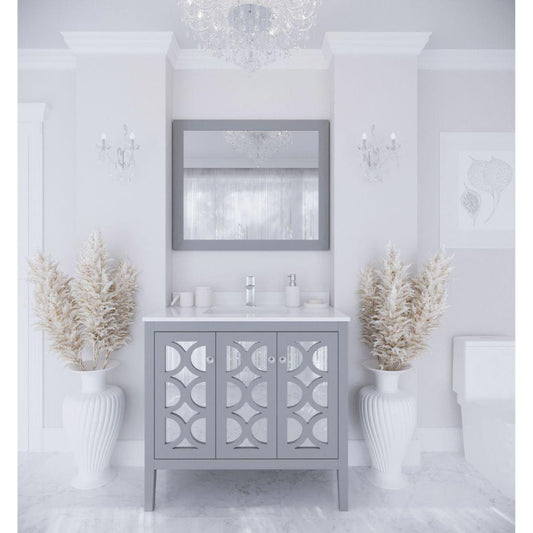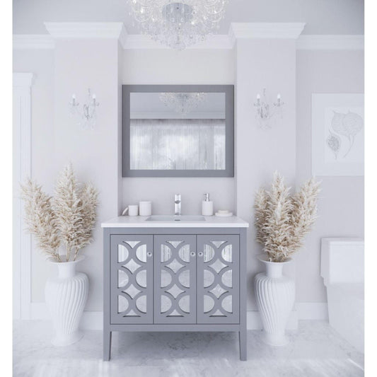 Laviva Mediterraneo 36" Gray Vanity Base and White Quartz Countertop with Rectangular Ceramic Sink