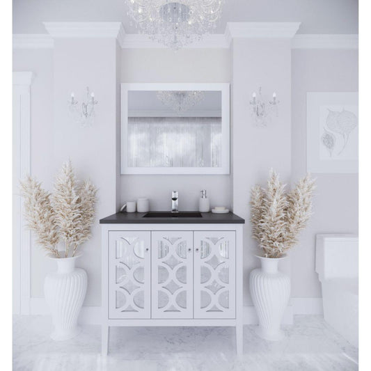 Laviva Mediterraneo 36" White Vanity Base and Matte Black Viva Stone Solid Surface Countertop With Integrated Sink