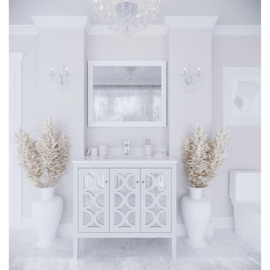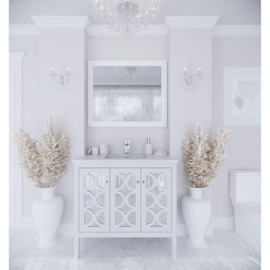 Laviva Mediterraneo 36" White Vanity Base and White Quartz Countertop with Rectangular Ceramic Sink