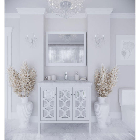 Laviva Mediterraneo 36" White Vanity Base and White Carrara Marble Countertop With Rectangular Ceramic Sink