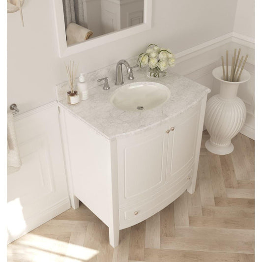 Laviva Estella 32" Freestanding White Vanity Base and White Carrara Marble Countertop With Oval Ceramic Sink