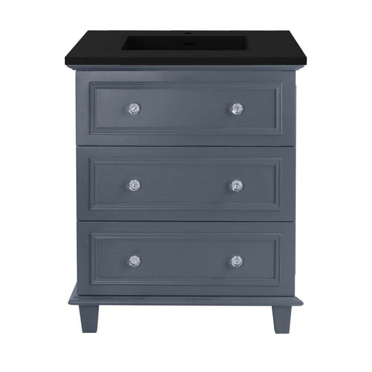 Laviva Luna 30" Maple Gray Vanity Base and Matte Black Viva Stone Solid Surface Countertop With Integrated Sink