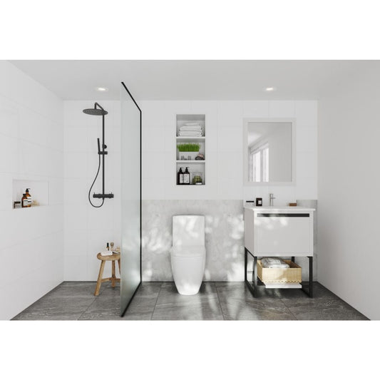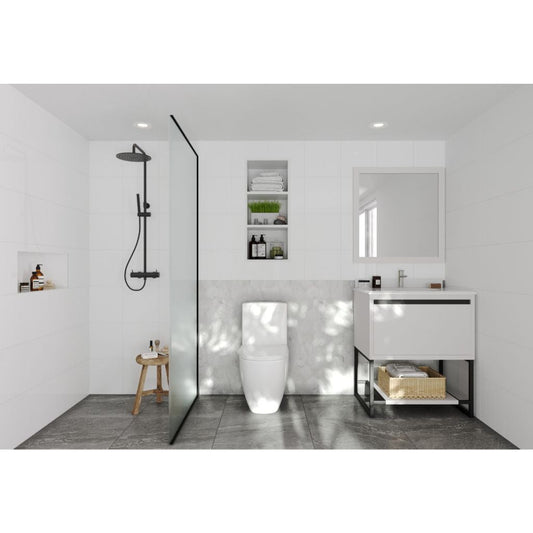 Laviva Alto 30" White Vanity Base and White Quartz Countertop With Rectangular Ceramic Sink