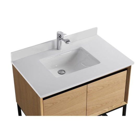 Laviva Alto 36" California White Oak Vanity Base and White Quartz Countertop With Rectangular Ceramic Sink