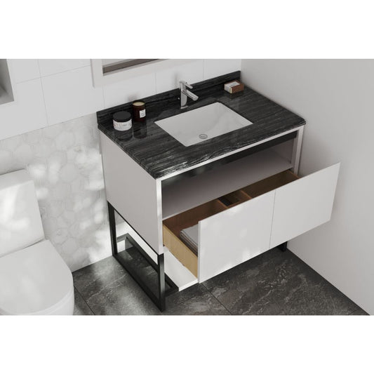 Laviva Alto 36" White Vanity Base and Black Wood Marble Countertop With Rectangular Ceramic Sink