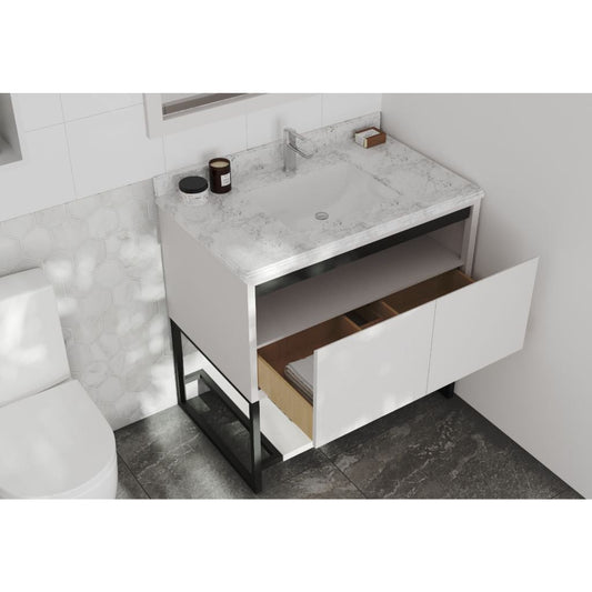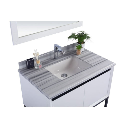 Laviva Alto 36" White Vanity Base and White Stripes Marble Countertop With Rectangular Ceramic Sink