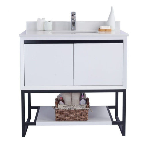 Laviva Alto 36" White Vanity Base and White Quartz Countertop With Rectangular Ceramic Sink