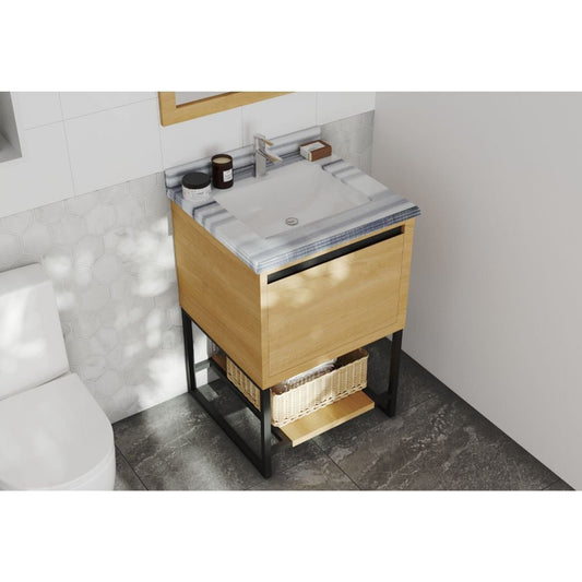 Laviva Alto 24" California White Oak Vanity Base and White Stripes Marble Countertop With Rectangular Ceramic Sink