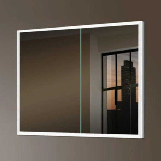 Lighted Impressions Kona 36" x 28" Rectangular Framed Wall-Mounted LED Mirror Cabinet With 3-Section Rocker Switch & Glass Shelves