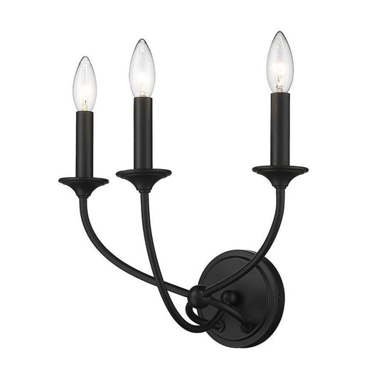 Z-Lite Arabella 3-Light Candelabra Matte Black Steel Frame Wall Sconce