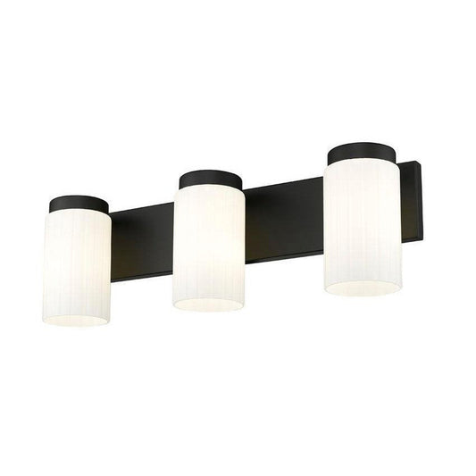 Z-Lite Burk 23" 3-Light Matte Black Steel Vanity Light With Gloss Opal Glass Shade