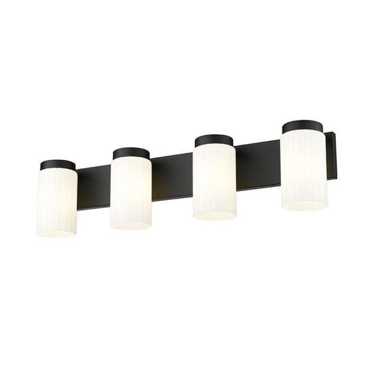 Z-Lite Burk 30" 4-Light Matte Black Steel Vanity Light With Gloss Opal Glass Shade