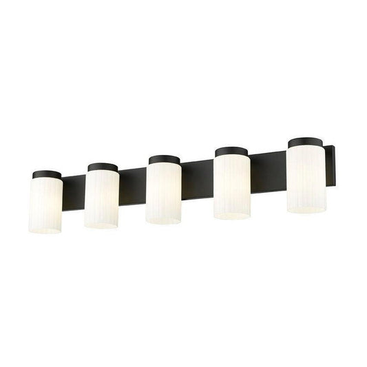 Z-Lite Burk 38" 5-Light Matte Black Steel Vanity Light With Gloss Opal Glass Shade