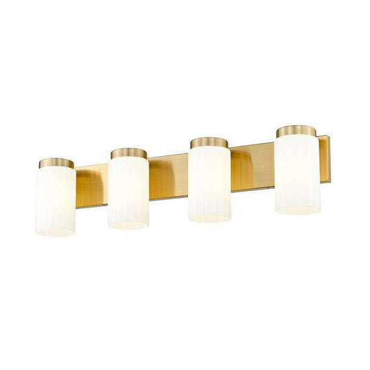 Z-Lite Burk 30" 4-Light Luxe Gold Steel Vanity Light With Gloss Opal Glass Shade
