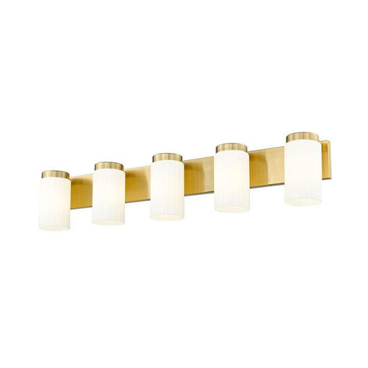 Z-Lite Burk 38" 5-Light Luxe Gold Steel Vanity Light With Gloss Opal Glass Shade