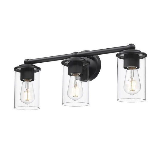 Z-Lite Thayer 23" 3-Light Matte Black Steel and Clear Glass Shade Vanity Light