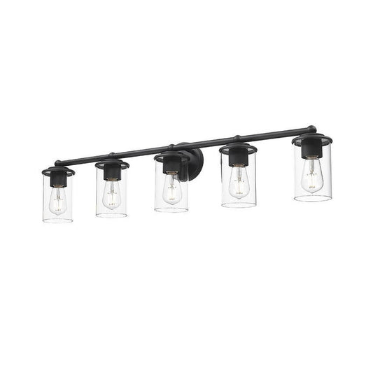 Z-Lite Thayer 39" 5-Light Matte Black Steel and Clear Glass Shade Vanity Light