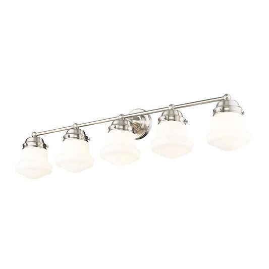 Z-Lite Vaughn 5-Light Brushed Nickel Steel Frame Matte Opal Glass Shade Vanity Light