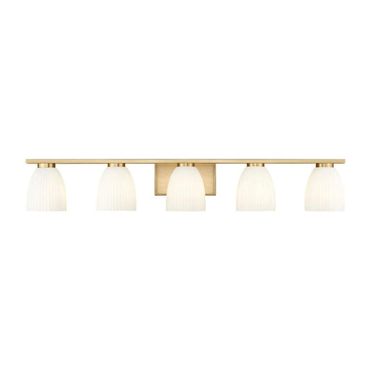 Z-Lite Naya 5-Light Medium Bulb Base Modern Gold Steel Frame Matte Opal Glass Shade Vanity Light