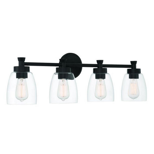 Craftmade Henning 30" 4-Light Flat Black Vanity Light With Clear Glass Shades