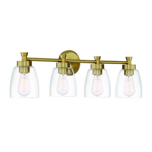 Craftmade Henning 30" 4-Light Satin Brass Vanity Light With Clear Glass Shades