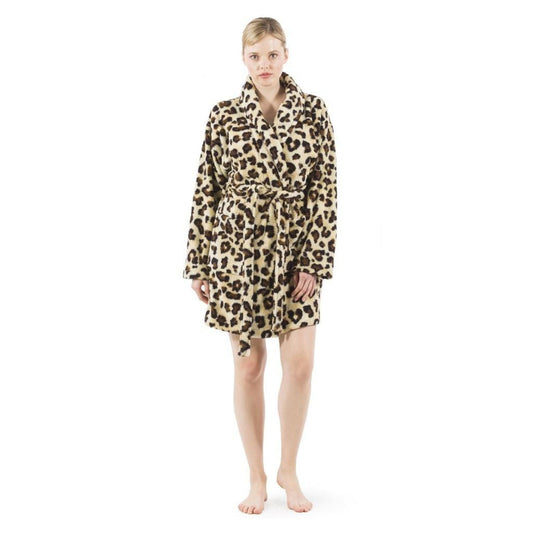 Linum Super Plush Luxurious Soft S/M Leopard Print Bathrobe