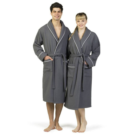 Linum Waffle Terry with Satin Piped Trim L/XL Grey Bathrobe