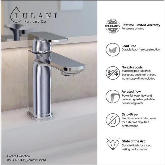 Lulani Corsica Chrome 1.2 GPM Single Hole One Handle Faucet With Drain Assembly