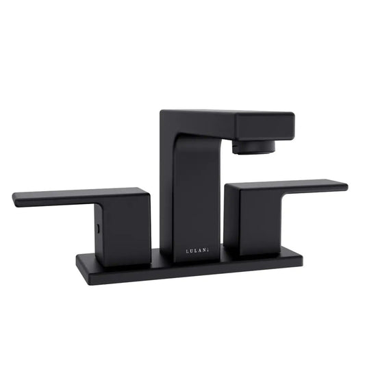 Lulani Capri Matte Black 1.2 GPM 2-Lever Handle 3-Hole Centerset Brass Faucet With Drain Assembly