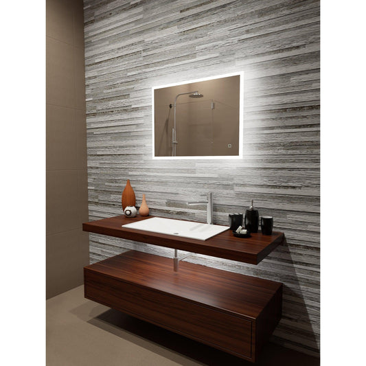 Paris Mirror Reflection 40" x 24" Rectangular Backlit Lighted Super Bright Dimmable Wall-Mounted 6000K LED Mirror With Frosted Edged Lighted Frame and Integrated Defogger System
